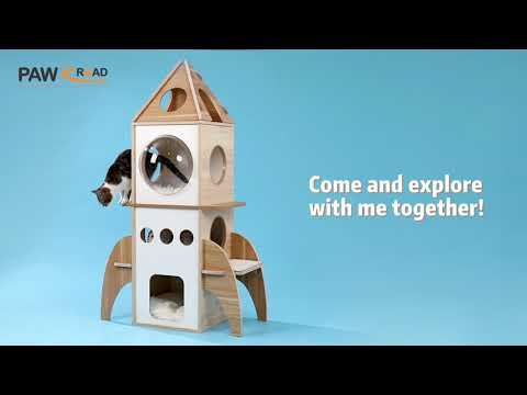 🚀 Explore the galaxy with the Pawz Road Rocket Shape Wooden Luxury Cat Tower. This 54" cat tree combines modern technology and design with 4 levels, spacious hideaways, and an acrylic porthole for viewing. Your cats will enjoy a space-style experience thanks to matted pedals and replaceable pom-poms. Built with durable materials and easy to clean, it's the perfect addition to any modern home.